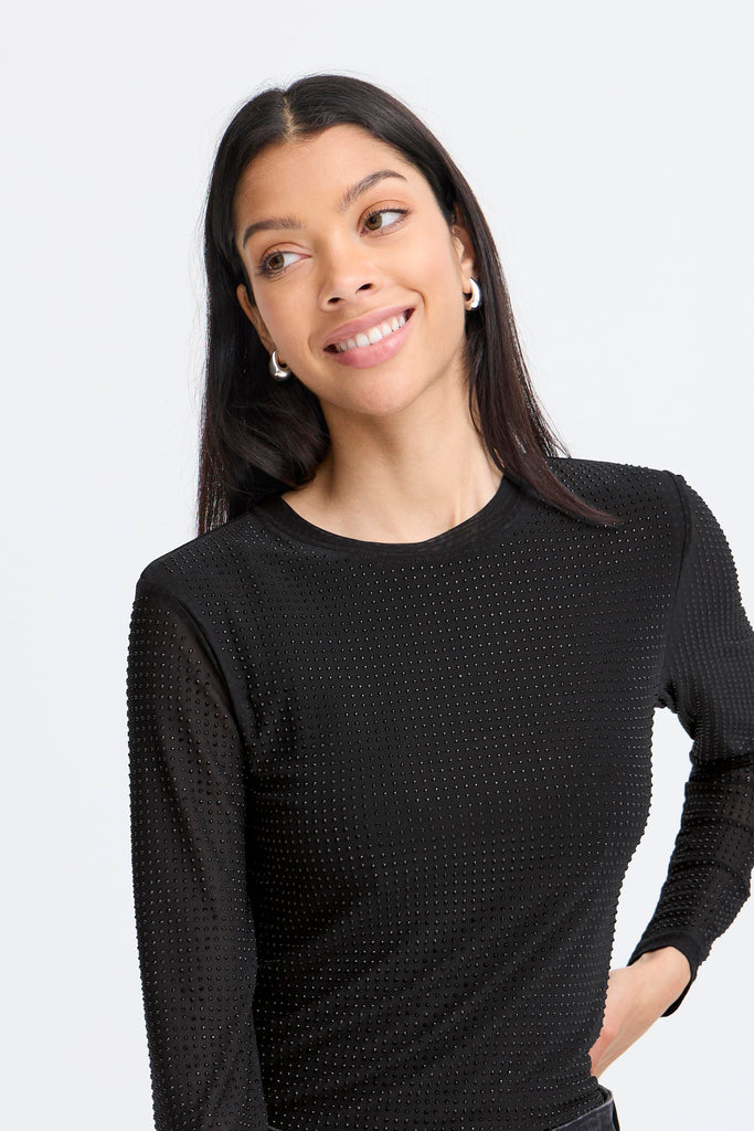 Mesh toppur með snyrtilega röðuðum svörtum steinum <3 gefur smá svona hringabrynju glitrandi væb, but make it casual fancy ;)