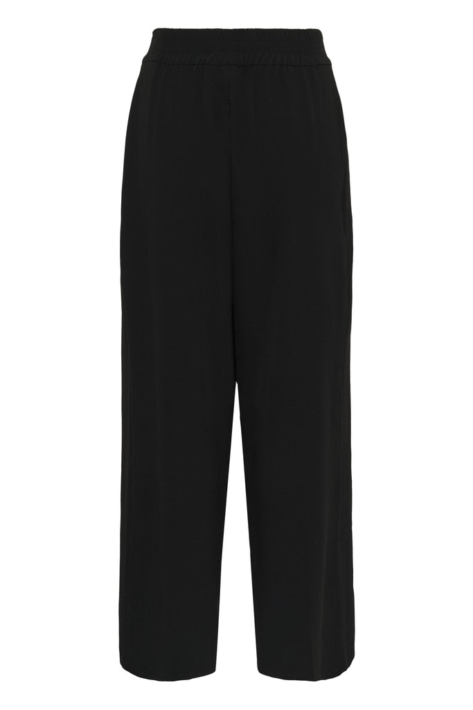 Kræktar, hnepptar og renndar að framan, með teygju aftan á mittinu og vösum þar sem vasar eiga að vera.